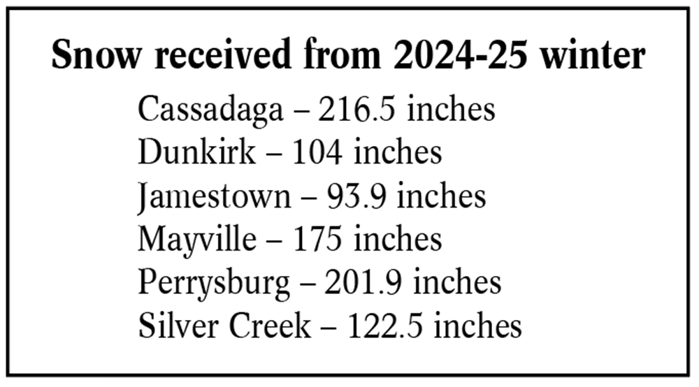 OBSERVER File Photo by Gregory Bacon The village of Cassadaga received 216.5 inches of snow for the winter of 2024-2025. It was the highest amount recorded in Chautauqua County for the National Weather Service.