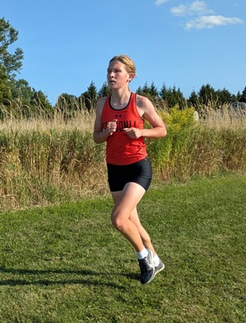 At left, Fredonia/Westfield's Izzie Czekanski was the top girls finisher in CCAA cross country action at Fredonia on Tuesday. Submitted Photo