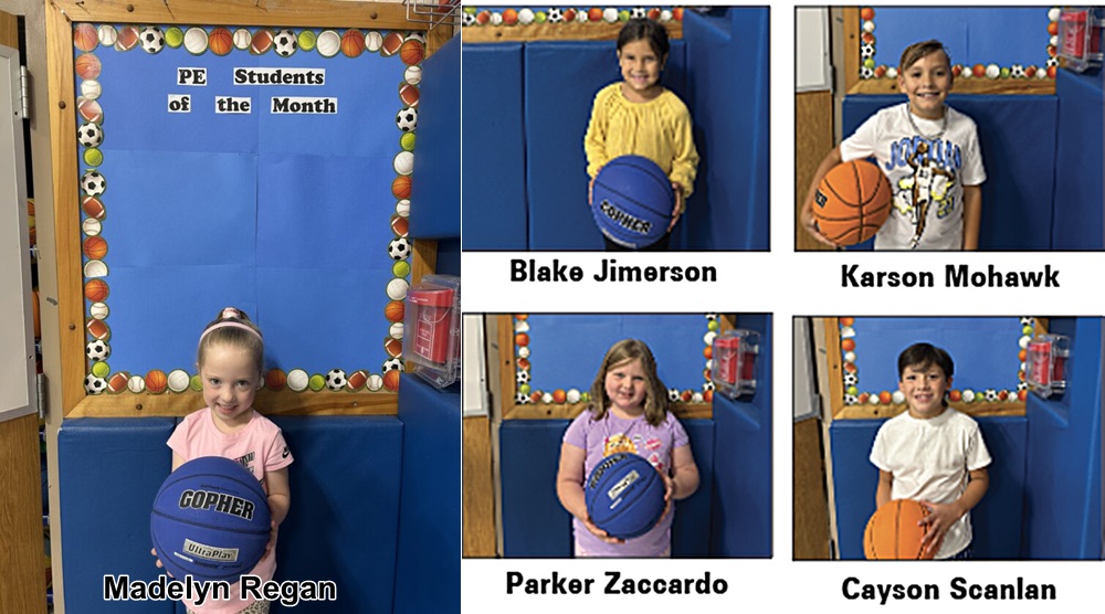 Gowanda Elementary School's September Students of the Month for Physical Education are Kindergartner Madelyn Regan, first-grader Blake Jimerson, second-grader Parker Zaccardo, third-grader Cayson Scanlan, and fourth-grader Karson Mohawk. These young Panthers work hard every day, are kind, and have a great attitude toward themselves, teachers and classmates.